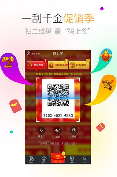 2016年10月10日-10月29日期间,全国用户使用福彩刮刮乐客户端扫描刮刮乐“一刮千金”中的促销二维码,即可参与互动游戏,赢取促销豪礼。