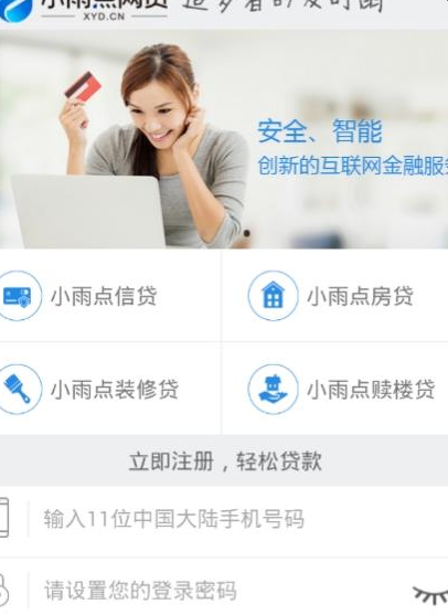 小雨点网贷是一款安全、智能、创新的互联网金融服务平台。该平台为您提供小雨点信贷、小雨点房贷、小雨点装修贷等模块功能应用。