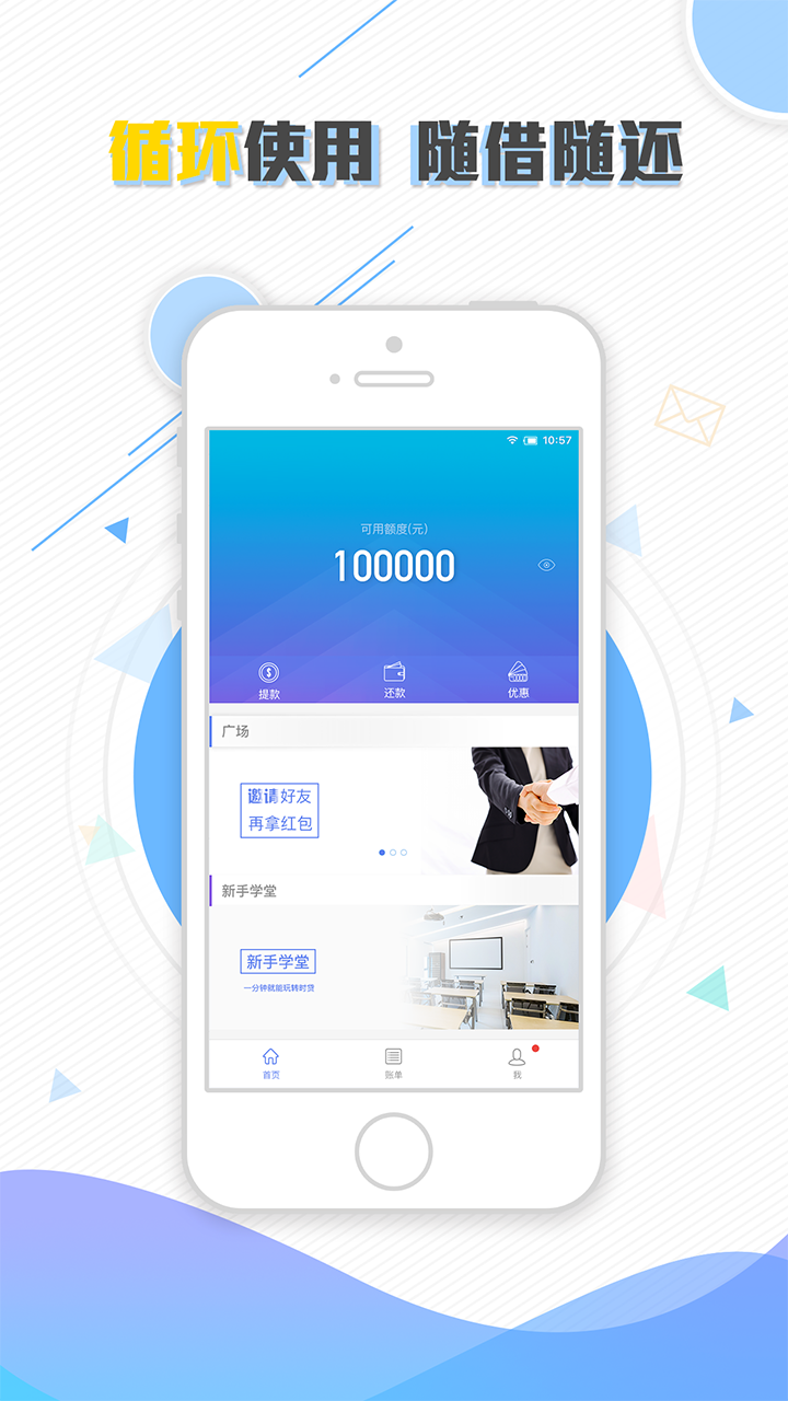 3.随借随还:一次申请,循环使用,随时提现,随时还款;