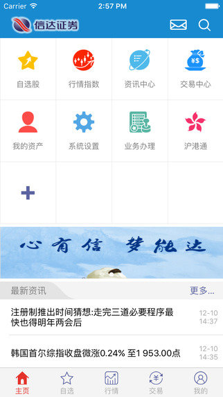 信达天是一款整合行情指数、资讯中心、交易中心、业务办理、我的资产等模块应用功能于一体的金融证券工具。有需要的用户,赶紧快来点击试试吧!