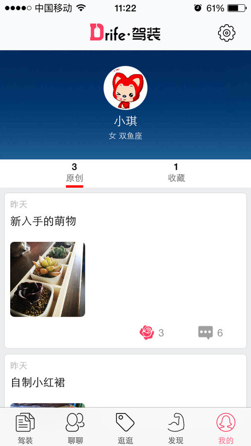 驾装是一款服务于女性车主的综合平台,和大家分享你的开车技术和用车心得,提高驾驶技巧,提供贴心订制服务和达人技术指导。