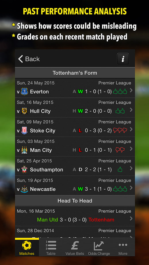 *****"IusethisappwhenIdomyfootballcoupon.IfIlikeamatchIcanlookupthestatsandmakeaninformedchoice.It'sreallyeasytonavigateandit'smygotoappforfootballbettinginfo.Amusthaveapp."LordPeterFlint