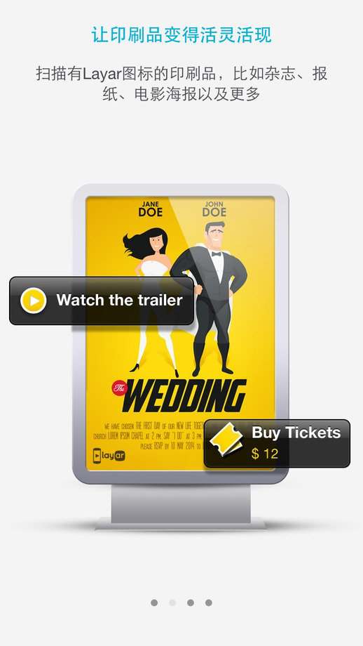 不知道什么可以扫描?寻找有Layar图标的杂志、报纸或者其他的出版物,或者试着扫描一个二维码!
