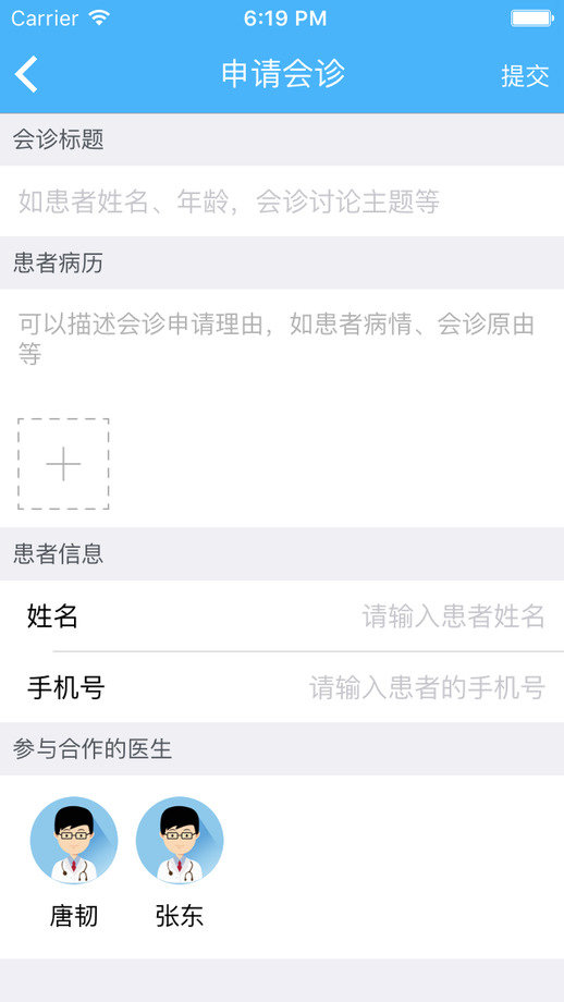 2.【会诊申请管理】与全国专家医生发起会诊,实现跨地域、跨科室的会诊服务,基于患者电子病历沟通患者情况