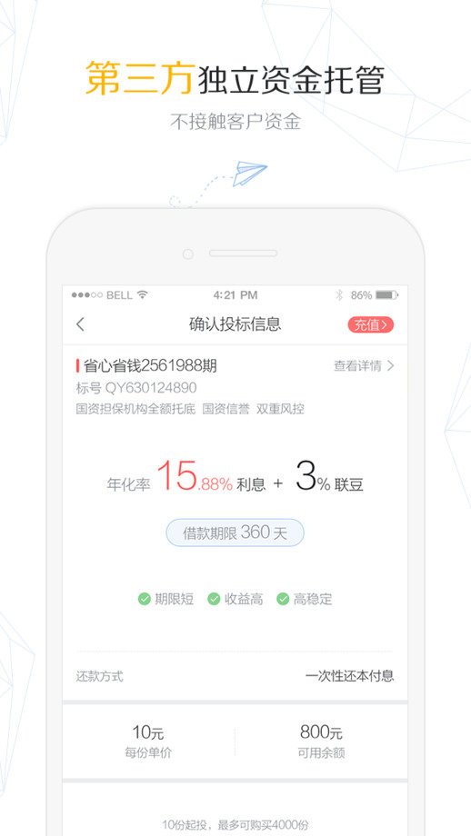 利息前置,投资中的联豆收益在投资生效后马上到帐!