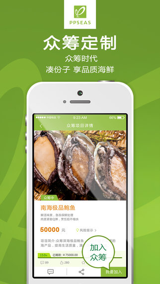 片片海是一款海鲜定制服务平台软件,优质海鲜支配到家,尽享健康品质风味;透明生产质量监控,众筹定制享品质海鲜。