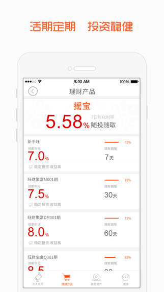 摇旺理财功能介绍: