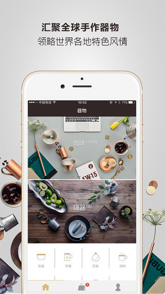 器物是一款品质消费软件,最直观的触感寻找您需要的宝贝,正品保证。QIU器物的诞生源于我们对内心诉求的遵从。从混沌的快节奏中清醒过来,我们想要慢慢找回生活最本真的样子。那些来自世界各地的精致杯盘器物,就好像是当地风俗人文的物化见证。我们寻找那些经过历史与经验洗礼、流传下来的好东西。分享它们,让更多人贴近器物本质,感受它们最真实的温度,重新品味手工艺的价值与魅力。