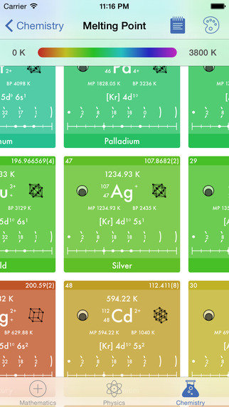 PeriodicTable: ForeachChemicalElementyouhaveaccesstomorethan40properties,rangingfromtheClassificationtotheEnthalpyofAtomisation.There'sprobablylittlechancethatScienceProcan'tsatisfyyourthirstforknowledge.