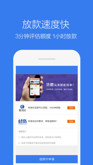 4.放款快:1分钟申请,审核通过当天放款,借钱就这么快;