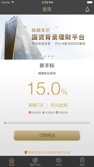 融融车贷ios版是一款汽车贷款理财软件,国资背景/环迅托管/安全稳健的互联网车抵理财平台,双倍利息,投多少送多少。