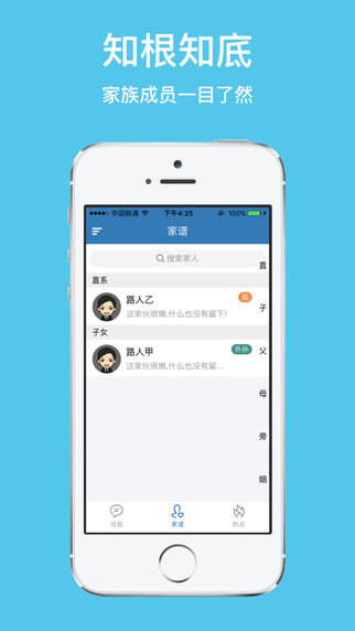 秘家谱iPhone版一款专注于亲人之间的社交应用软件,清晰了解家庭信息,随时与家人沟通。在这个只有亲友的圈子中,你可以查看子女时时刻刻的状态,询问年迈父母的身体状况,分享亲戚之间的喜悦,在此感悟亲情的真谛,无论你身处何方,或是亲人身在何地,都能送上一声问侯,给予一声祝福。