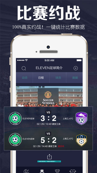 球队日程,创建比赛活动,报名、请假一目了然,记录比赛数据,全队轻松共享;
