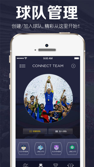 球队主页,分享队内踢球动态,帅气的踢球瞬间与队友一同分享;