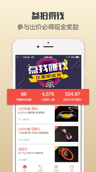 必得拍PRO是一款能赚钱的竞拍网平台。在这里,用户只要注册有现金红包体验金可以使用哦!界面简洁,操作简易。感兴趣的伙伴儿们,赶紧试试吧!