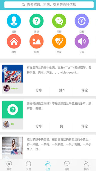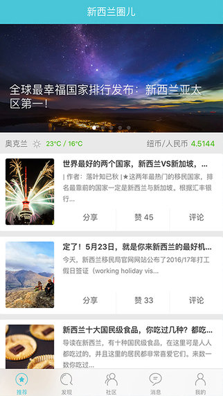 还有每日更新的新西兰新闻。社区内还含有互动版块,