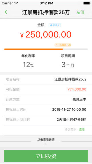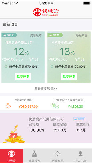 钱进贷是一款互联网金融理财服务软件,丰富的行业经验,优秀的精英人员,最值得信赖的品牌。平台独特的推荐返佣功能让平台会员活跃推荐,这就让平台节省了更多的推广费用,幸运大抽奖以及红包等新型的模式,这样的模式深受客户的好评,因为这些灵活新颖的方式非常吸引客户,也让客户在投资理财的同时享受更多乐趣。