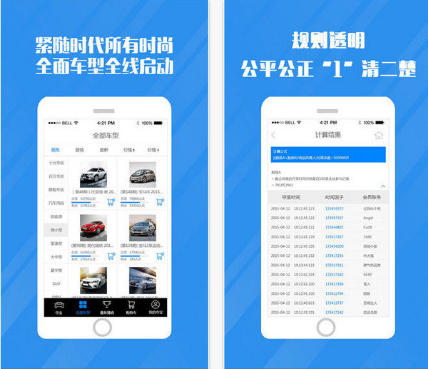 【2元抢豪车】-在车来车网,车辆价格被分成若干等分,2元一份,用户可以购买一份或者多份,当等分全部售完后,由系统规则通过精确计算抽出一名幸运者最终得到车辆!