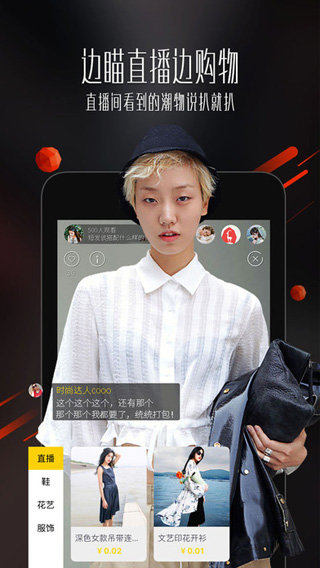 跟着喜欢的达人逛遍全球时尚现场,实时互动,边看直播边购物,看到心水的潮物,直播间里就可当场下单购物。