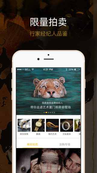 5高品质生活需求,提供腕表、包袋、酒店、豪车、艺术等产品的在线拍卖服务。即拍即达,我们提倡美的共享。