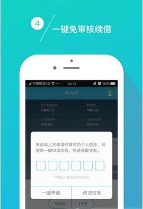 极速!申请成功至放款快至15分钟。 灵活!5000元以内小额贷款,随借随还。 便捷!五个问题,一步申请,完全线上。 贴心!申请贷款,何必告知亲属朋友? 安全!银行级别加密方式,保障用户的信用信息安全。 更新内容 提升了稳定性