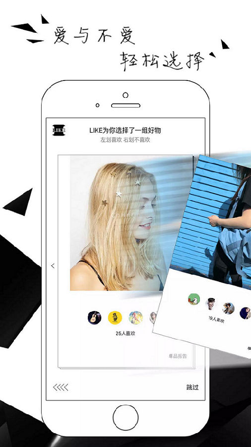 区别于传统电商瀑布流展示方式所带来的视觉疲劳与选择困难,我喜欢APP根据用户的多维度属性,通过独有的大数据分析,可以精准把产品推送到消费者的手机端,让用户有更多时间在喜爱的产品中仔细对比。为达到更好的使用体验,我喜欢APP精心设计了单品滑动展示,每屏只呈现一个单品,在用户面前停留1到1.5秒,让用户产生印象,既方便用户走心欣赏,也有利于广告主的推送展示。左划喜欢,右划不喜欢,让消费者快速找到“真爱”。
