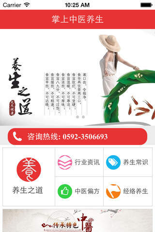 掌上中医养生注意重视于全民健康养生,APP内含有养生之道、养生常识、中医偏方、养生馆等多项养生常识内容,欢迎广大用户下载使用