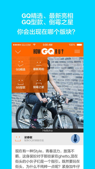 GQ24软件应用是一款为中国精英男士打造的掌上阅读应用。从时尚谈资到深度报道,从优质消费到生活指南,从型款搭配到有型装扮,GQ24每天为你带来雅量高质的阅读内容。现在,GQ24为中国男士打造全新的衣装互动社区——“HowGQareyou!”。这里活跃着中国最会穿衣服的男士和最专业的服装编辑,每天带给你新鲜的面孔与装扮,以及最具有GQ态度的深度点评。
