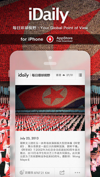 iDaily·每日环球视野」是第一个提供超越3000px超高清分辨率图片的中文媒体应用,每天由中国最出色的图片编辑独家挑选,为读者奉上最高清晰度的全球视野体验。