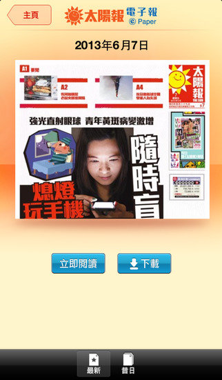东方日报是一款新闻资讯阅读软件。电子报会员版由首创把整份报章原貌上网的东方报业集团,再以崭新技术推出,包括《东方日报电子报》及《太阳报电子报》;无论是新闻内容,还是广告客户提供的消费资讯,均一览无遗。读者可通过过,iPhone/iPad揭阅,有如手握印刷版报章,既是尖端科技产品,亦保留传统阅读乐趣,为流动电子媒体奠下革命性新典范。