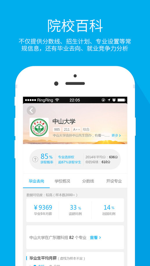 院校百科:不仅提供分数线、招生计划、专业设置等常规信息,还有毕业去向、就业竞争力分析