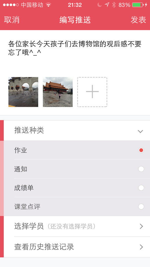 轻松查看试听人员、学生档案,帮助管理者从繁琐的校园事务中解脱出来,还可以通过手机随时随地发布活动计划、信息通知,直接飞入学员、教师掌心。