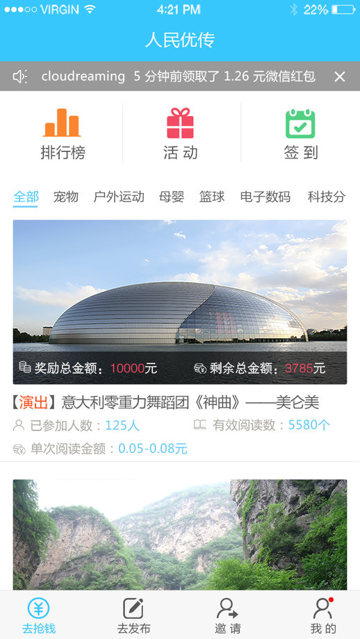 人民优传的理念是:用户不仅是传播载体,更是受益个体,轻松有趣把钱拿。无需任何投入,利用碎片时间,阅读和转发或点击有价值的信息就可以赚钱。