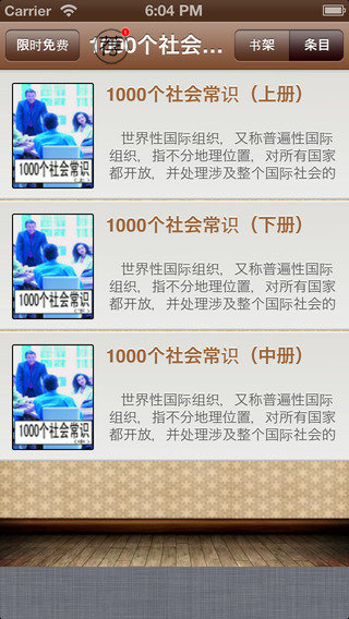 1000个社会常识是一款生活常识知识软件,在这个社会中生活,了解越多的生活常识对我们的生活越有帮助。我们作为社会整体中的一部分,社会上的大体事件,社会上的一些常识,我们都应该有一定的了解。针对国际性织、国际事务、人类和平、国家政体、国防教育、爱国主义、人权平等、民族团结、民族自由、新闻出版、媒体传播、法律意识、知识产权、社会公德、道德品质等相关概念的解释,对各类问题的概述,给我们一个全新的认识。想要了解具体的内容,我们一起来关注《1000个社会常识》的三本书,即:《1000个社会常识(上)》、《1000个社会常识(中)》、《1000个社会常识(下)》。