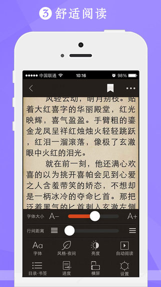 *横屏竖屏阅读任选,白天/夜间模式随时切换。
