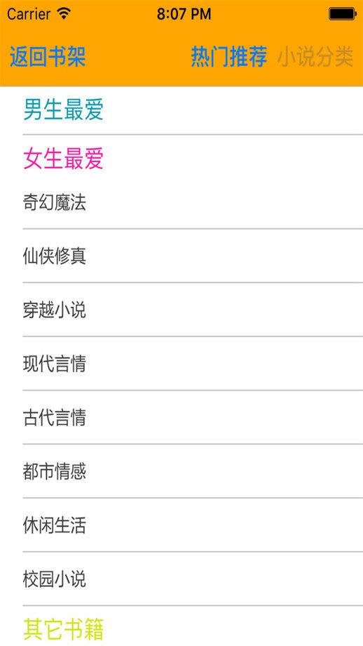 2.分类检索更方便,男生频道,女生频道,世界名著