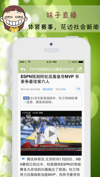 妹子说新闻是一款新闻资讯软件,最八卦娱乐。明星全动态,社会新闻百态,体育赛事资讯,社会奇葩事件,娱乐明星八卦热点每天及时更新,让你上下班路上快速了解天下大事和奇闻。