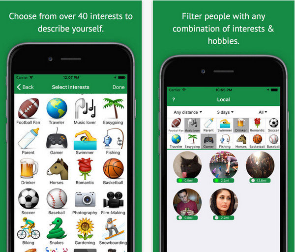 Veepapp这是一款基于个人兴趣和LBS的陌生人社交软件!!这个App是完全免费的,不需要跟Facebook账号相连,并且有独特的兴趣搜索系统。而且这款软件没有任何聊天限制和广告。。Veepapp会在附近的人列表里显示跟你具有相同兴趣爱好的人。Veep还具有聊天功能,帮助用户和这些附近具有相同兴趣的网友交流或者约会!