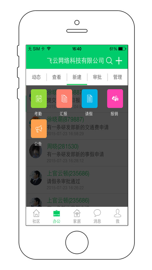④智能管理:智能打卡、考勤、汇报、通知、审批及项目协同,便捷请假、报销,记录云存储。随时查看记录,实时监控工作进度,提高企业运营管理效率。