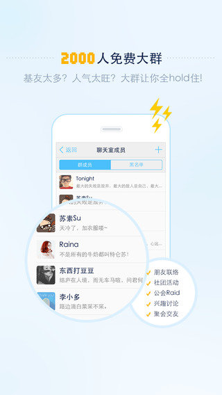 【200人私人聊天室】:好友多?公司大?我们都不怕,只要你hold住。20个人的语音群怎么能够,快开始200人的私人聊天室吧,一起来一次线上Party。神聊率先开创免费200人私人聊天室权限,不收扣币、不用太阳,秒杀一切还只有20人群聊上限的语音对讲App。