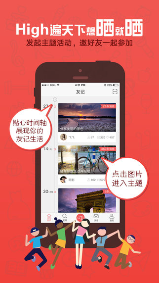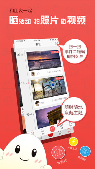友记是一款记录生活中各种有趣的活动,和朋友一起分享快乐的软件。每天都有有趣的事情发生,每天都是快乐的一天,和朋友们一起玩耍,记录下这一切。