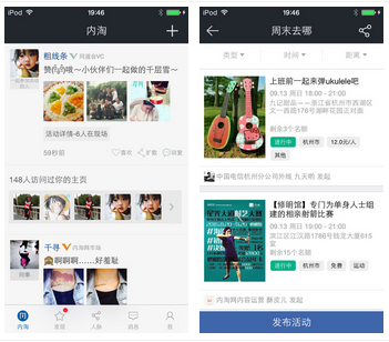 内淘是一个更实用、更有趣的“轻”职场社交平台。专注于服务初、中级职场人士。帮大家解决生活上的烦恼(如:租房、闲置、相亲等);同时通 过多样化的活动帮大家丰富周末生活;通过初、中级职场人士经验的传承与对接,实现职场提升。