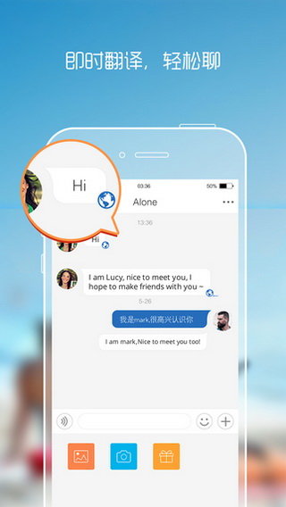 1.偶遇:世界各地帅哥和美女等你来偶遇,想和法国美女来一个浪漫的约会?想和德国绅士邂逅一场美丽的际遇?全面的个人资料,让你快速了解异国友人,随手点个赞、发送一声hi,即可轻松畅聊全球!
