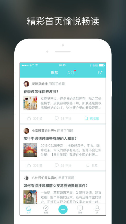 当你看到有趣的话题、问题或人时,你可以点击关注按钮,不错过来自于他们的最新动态。