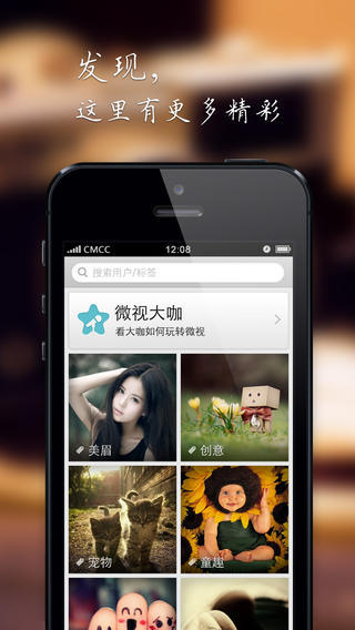 3.目前已有大量明星用户入驻微视,包括何灵、蔡健雅等明星,以及很多跟腾讯微博玩的比较好的美女模特已经入驻,目前微视正着力向微视用户推荐这些名人。