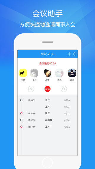 企业员工可以轻松地通过企业通讯录随时随地查找人员,并可通过即时消息、文件传输、直接语音会话或者视频、高质量语音会议服务等特色功能满足不同办公环境下的沟通需求。