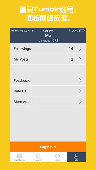 -登录Tumblr账号,进行账号管理和信息同步