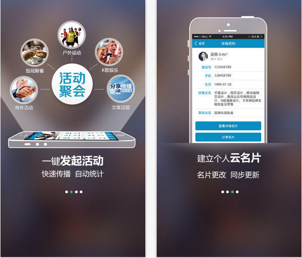 3、云名片-----在云名片上更改个人信息,直接同步到好友的通讯录里面,无需逐个更新。
