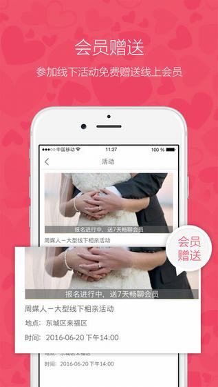 奇缘相亲app是一款集线上线下为一体的平台化婚恋交友软件,真实的呈现每次参加过活动的会员信息,不用再担心网络上的用户不真实,我们的线下会员都来自每次的线下活动,只有参加了线下交友活动才有能获得我们的会员资格,这个资格可是花钱都不能购买的哦。