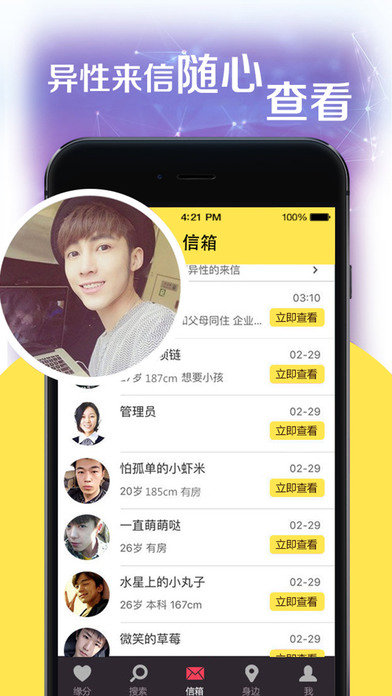 秒约app是一款时下非常火爆的同城约会交友聊天工具。有ta在手,寂寞时刻谈情说爱,随时随地。异性来信,随心查看,方便快捷。